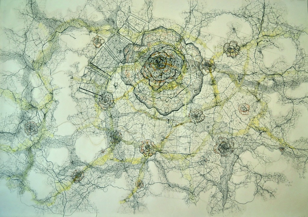 » Web Love, pencils, resin, on paper, 115 x 165 cm.