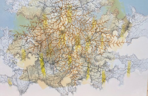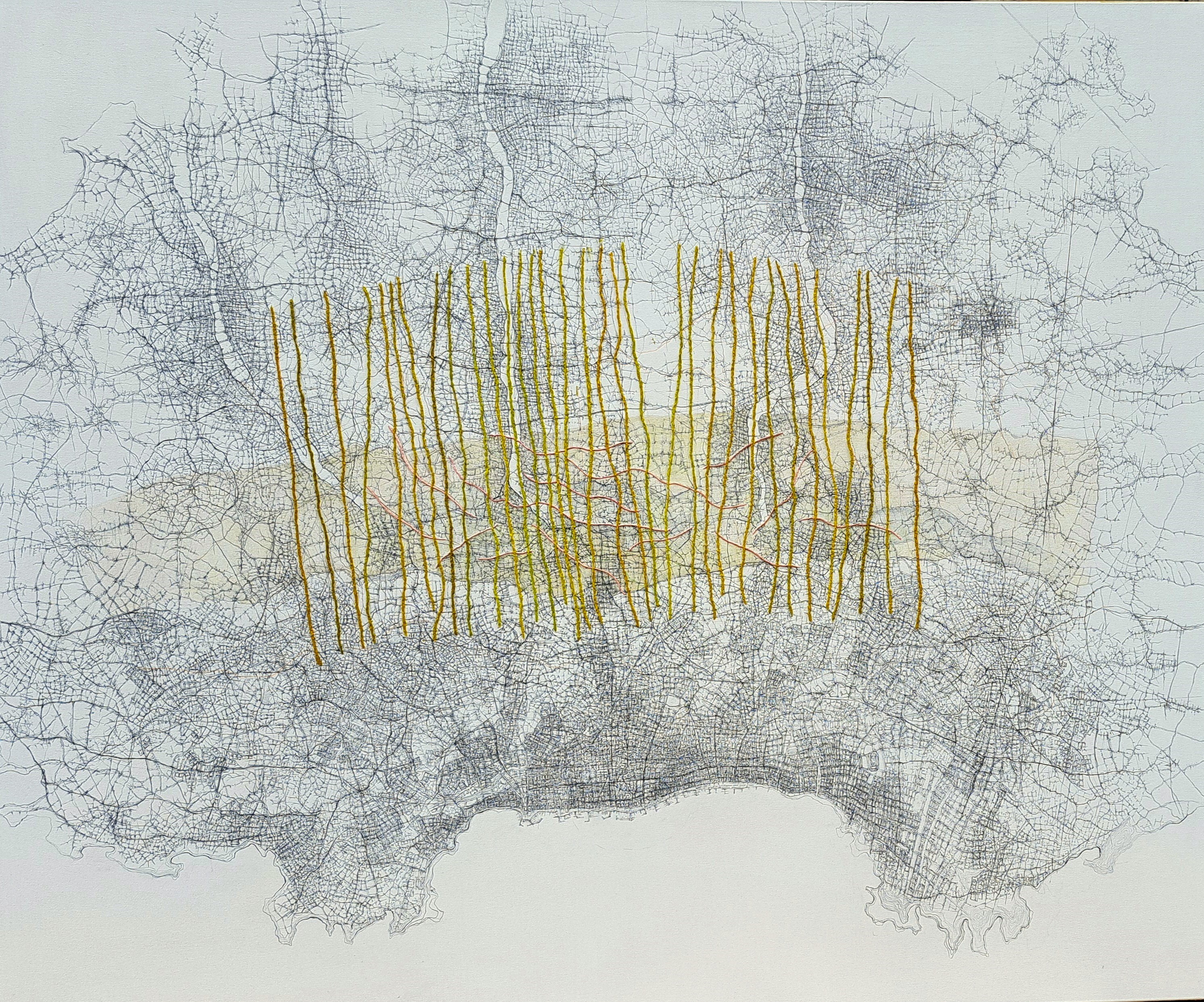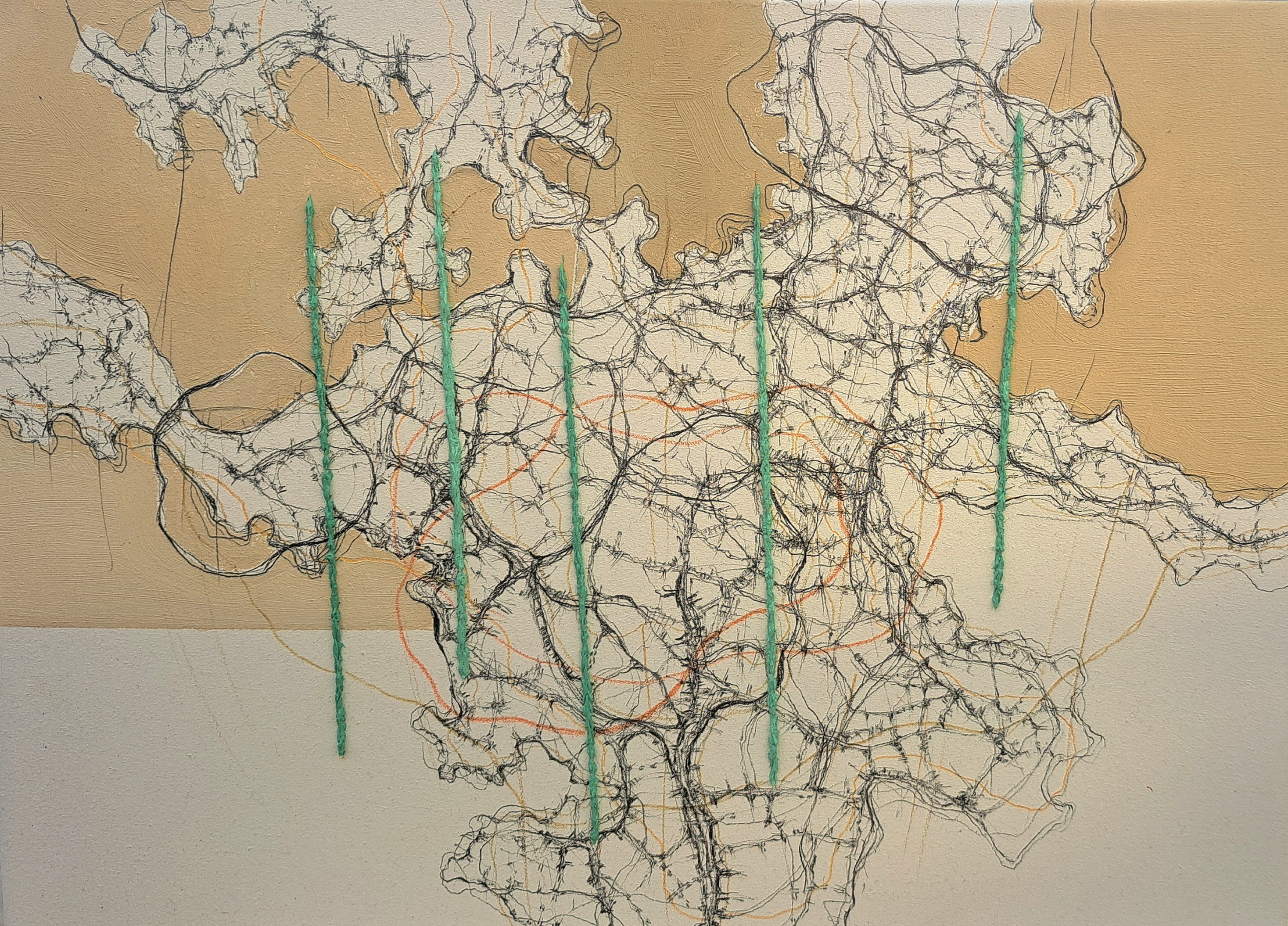 Untangling my Tangle, 130×160 cm pencils, oil paints, on canvas